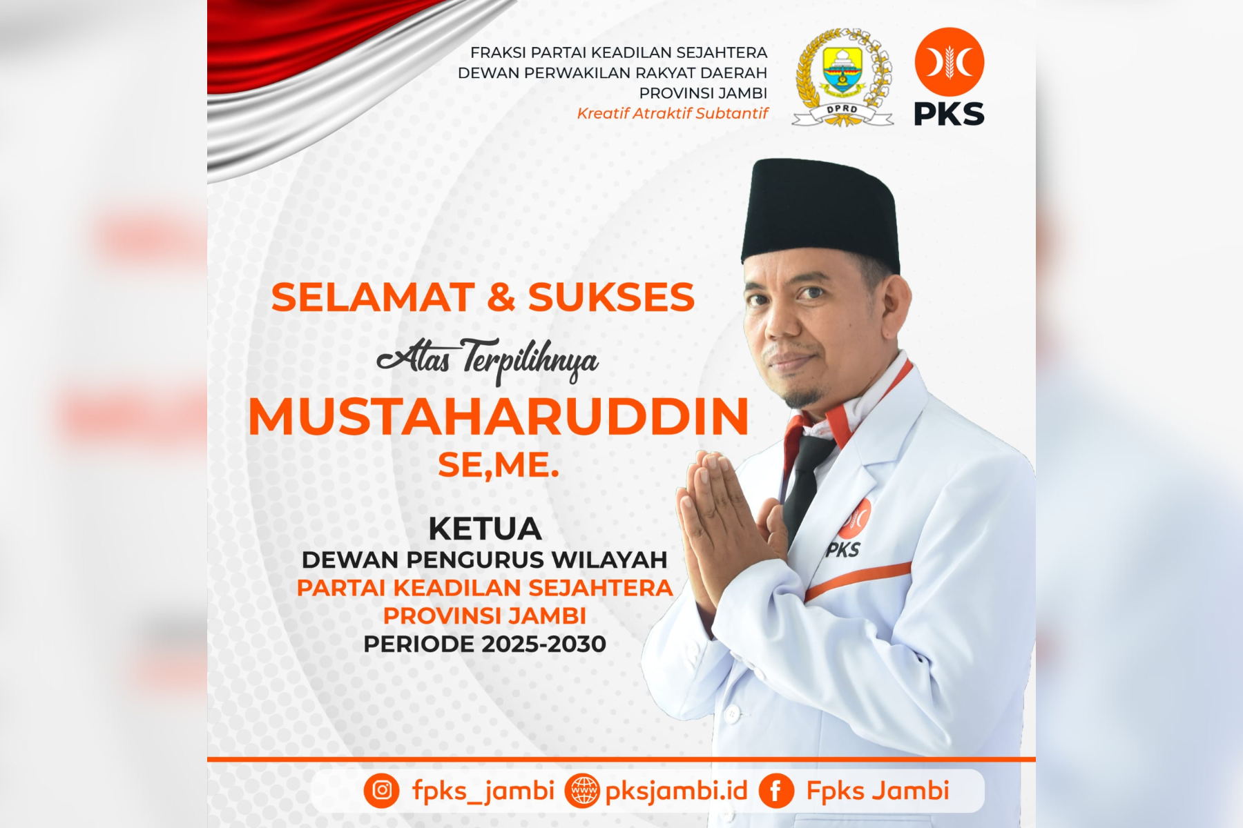 Ketua DPW terpilih, Mustaharudin, S.E., M.E., dikenal sebagai sosok militan, komunikatif, dan berorientasi pada pelayanan publik. Kepemimpinannya bersama tim sekretariat dan kaderisasi yang solid, memberikan harapan baru bagi PKS Jambi untuk terus hadir sebagai solusi atas permasalahan rakyat.