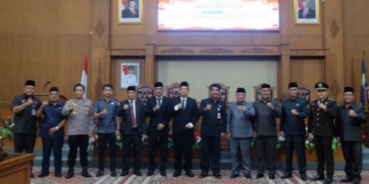 SuaraParlemen.co, Jambi – DPRD Kabupaten Muaro Jambi menggelar rapat paripurna untuk menetapkan pasangan calon Bupati dan Wakil Bupati terpilih hasil Pemilihan Kepala Daerah (Pilkada) 2024. Rapat ini dilaksanakan di Ruang Rapat Paripurna DPRD Kabupaten Muaro Jambi pada Minggu, 9 Februari 2025.