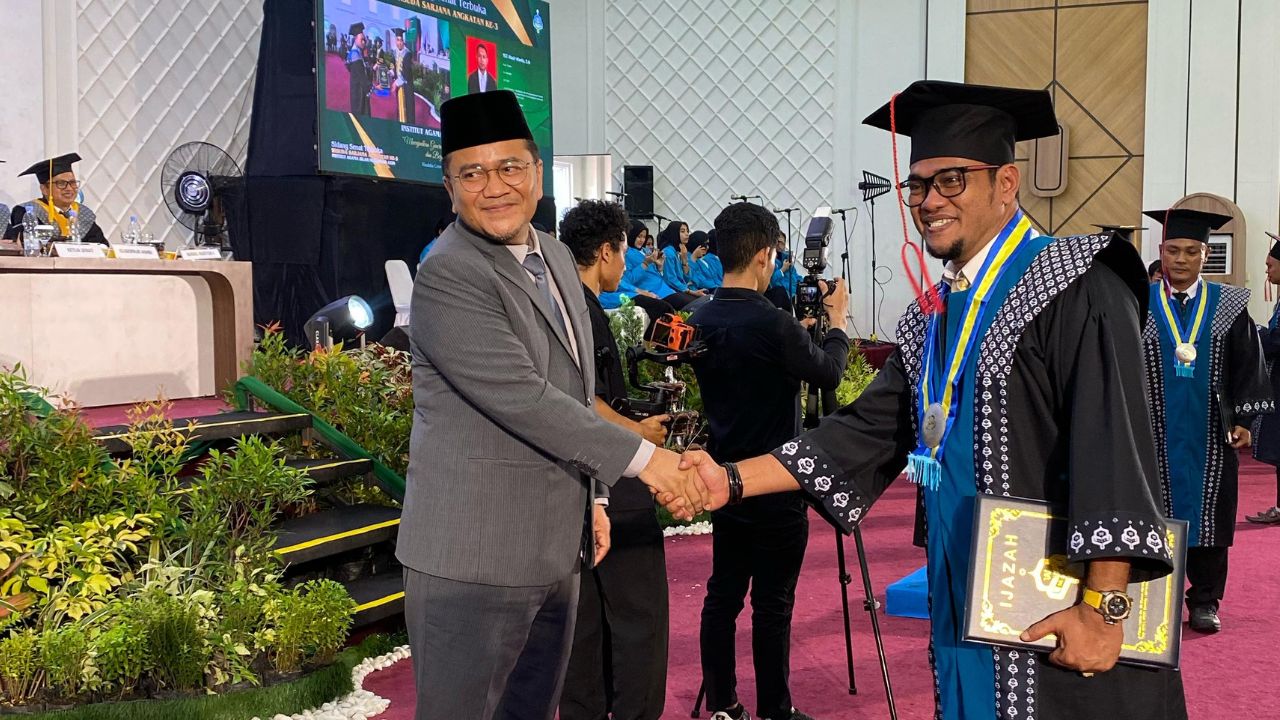 SuaraParlemen.co, Kota Jambi – Dr. dr. H. Maulana, MKM, pendiri Institut Agama Islam Muhammad Azim (IAIMA) Jambi, menghadiri acara wisuda angkatan ke-3 yang berlangsung di Maulidia Convention Center (MCC) Kota Jambi. Kehadiran beliau menambah semarak acara yang penuh kebahagiaan bagi para wisudawan dan keluarga mereka.