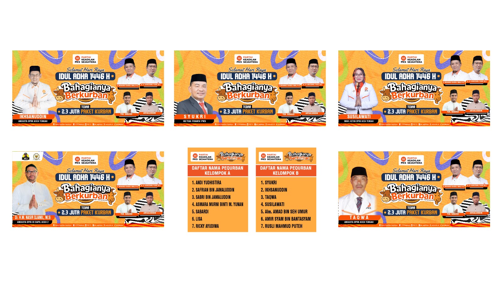 Empat anggota Fraksi PKS DPRK Aceh Tengah yang berpartisipasi dalam kegiatan qurban tersebut adalah Susilawati, Taqwa, Syukri, dan Ikhsanuddin. Mereka menyumbangkan dua ekor sapi dan empat ekor kambing, yang dagingnya kemudian dibagikan kepada warga sekitar, khususnya masyarakat yang membutuhkan.