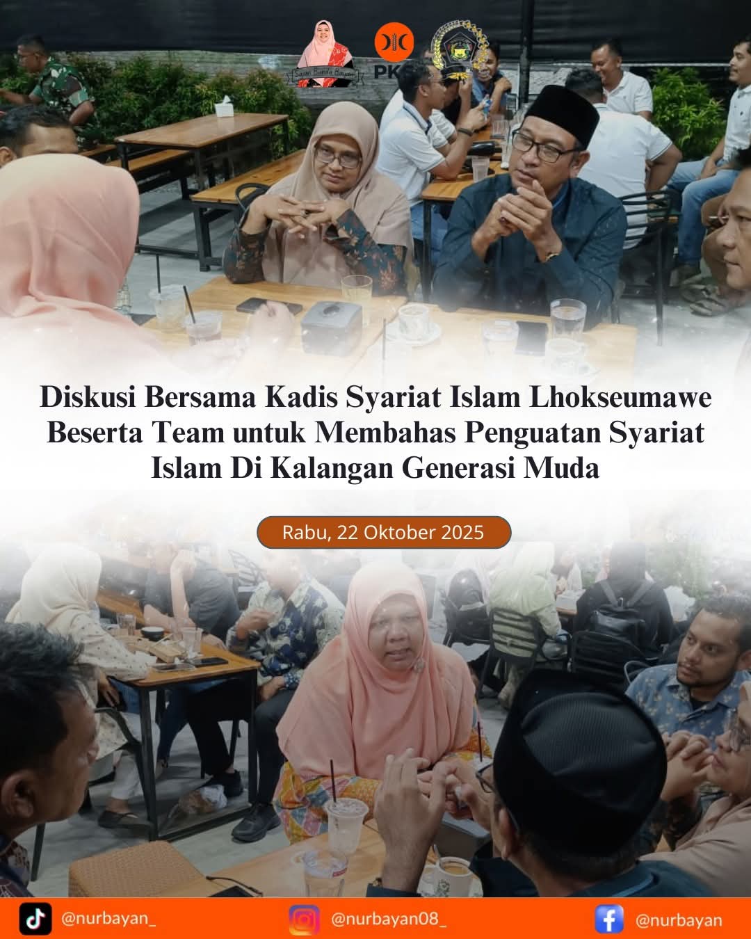 Penegasan ini disampaikannya usai menghadiri pertemuan dan diskusi intensif bersama Kepala Dinas Syariat Islam Kota Lhokseumawe beserta jajaran pada Rabu, 22 Oktober 2025 sore.