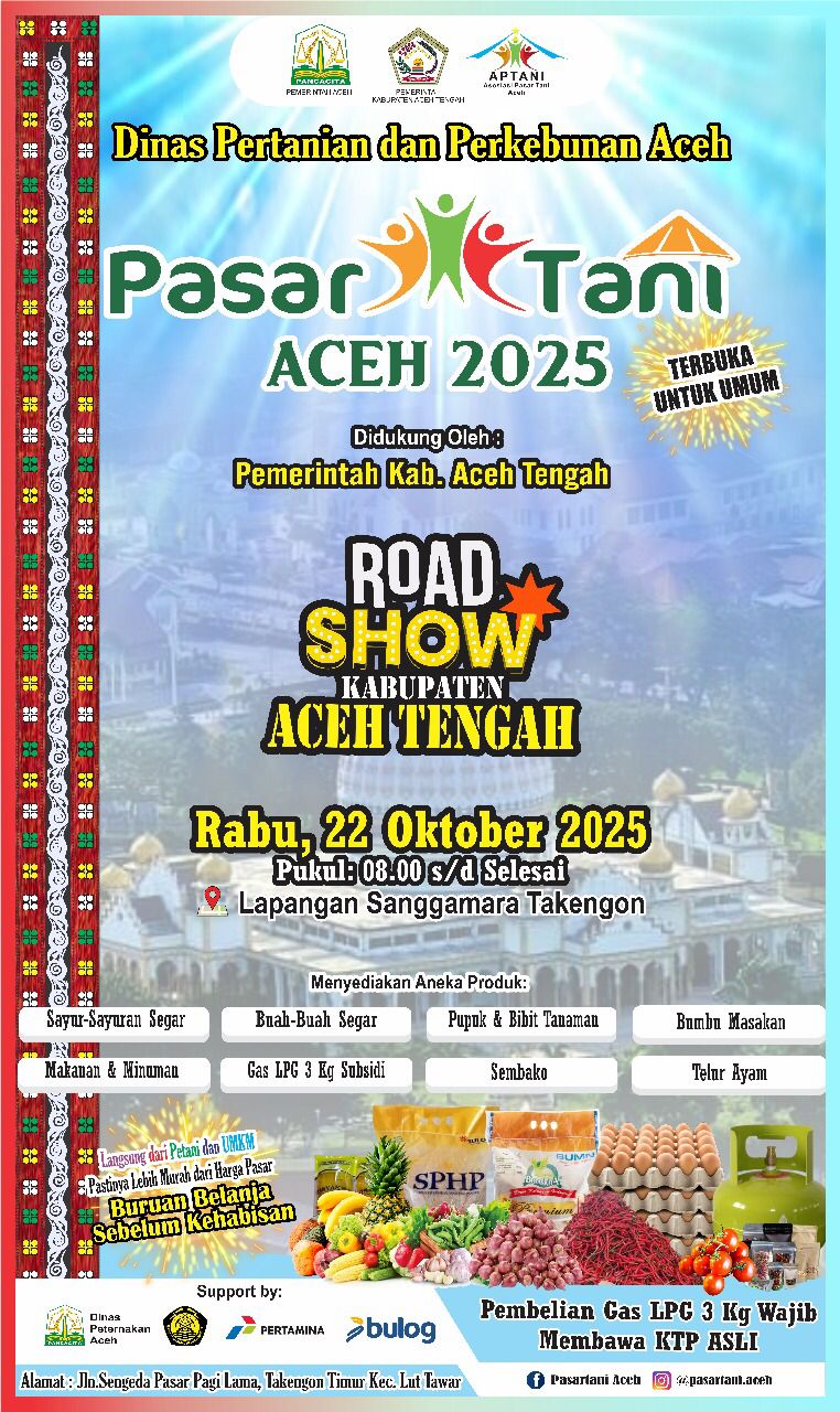 Didukung oleh: Pertamina, Bulog, dan berbagai pihak terkait lainnya, acara Pasar Tani Road Show di Aceh Tengah ini diharapkan dapat memberikan dampak positif signifikan bagi perekonomian lokal dan daya beli masyarakat. (Kjp)