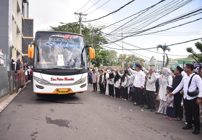 “Bapak dan Ibu semua bukan hanya jamaah, tapi juga duta daerah dan tamu Allah. Tampilkan sikap terbaik, jaga kebersamaan, dan manfaatkan waktu sebaik-baiknya untuk mendekatkan diri kepada Allah SWT. Kami di sini mendoakan, semoga semua ibadah berjalan lancar dan penuh keberkahan,” ucapnya, disambut haru oleh para jamaah.