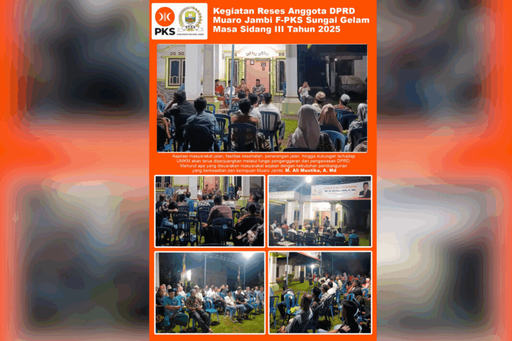 SuaraParlemen.co, Sungai Gelam, 26 Agustus 2025 – Anggota DPRD Kabupaten Muaro Jambi sekaligus Ketua Bapemperda, M. Ali Mustika, menggelar kegiatan reses di RT 001 Desa Sungai Gelam, Kecamatan Sungai Gelam. Kehadiran legislator ini disambut hangat warga yang antusias memanfaatkan kesempatan untuk menyampaikan aspirasi secara langsung kepada wakil rakyat mereka.