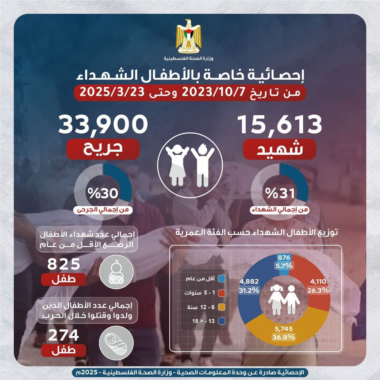 – Sebanyak 825 bayi Palestina yang berumur di bawah 1 tahun meninggal dunia akibat konflik ini.