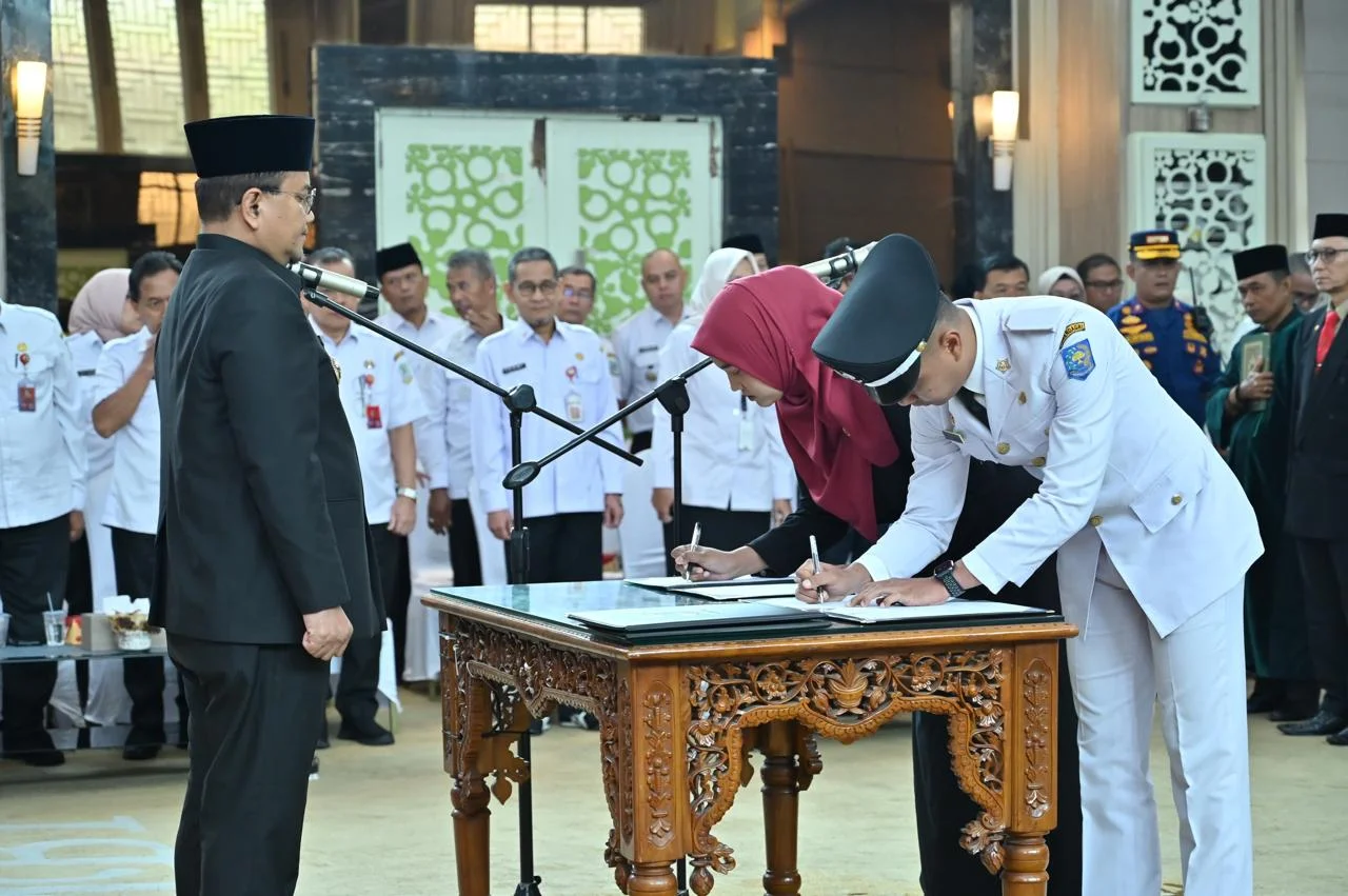 Dalam acara tersebut, Wali Kota Maulana juga memimpin penandatanganan pakta integritas serta penyematan tanda pangkat dan jabatan kepada para pejabat yang baru dilantik.