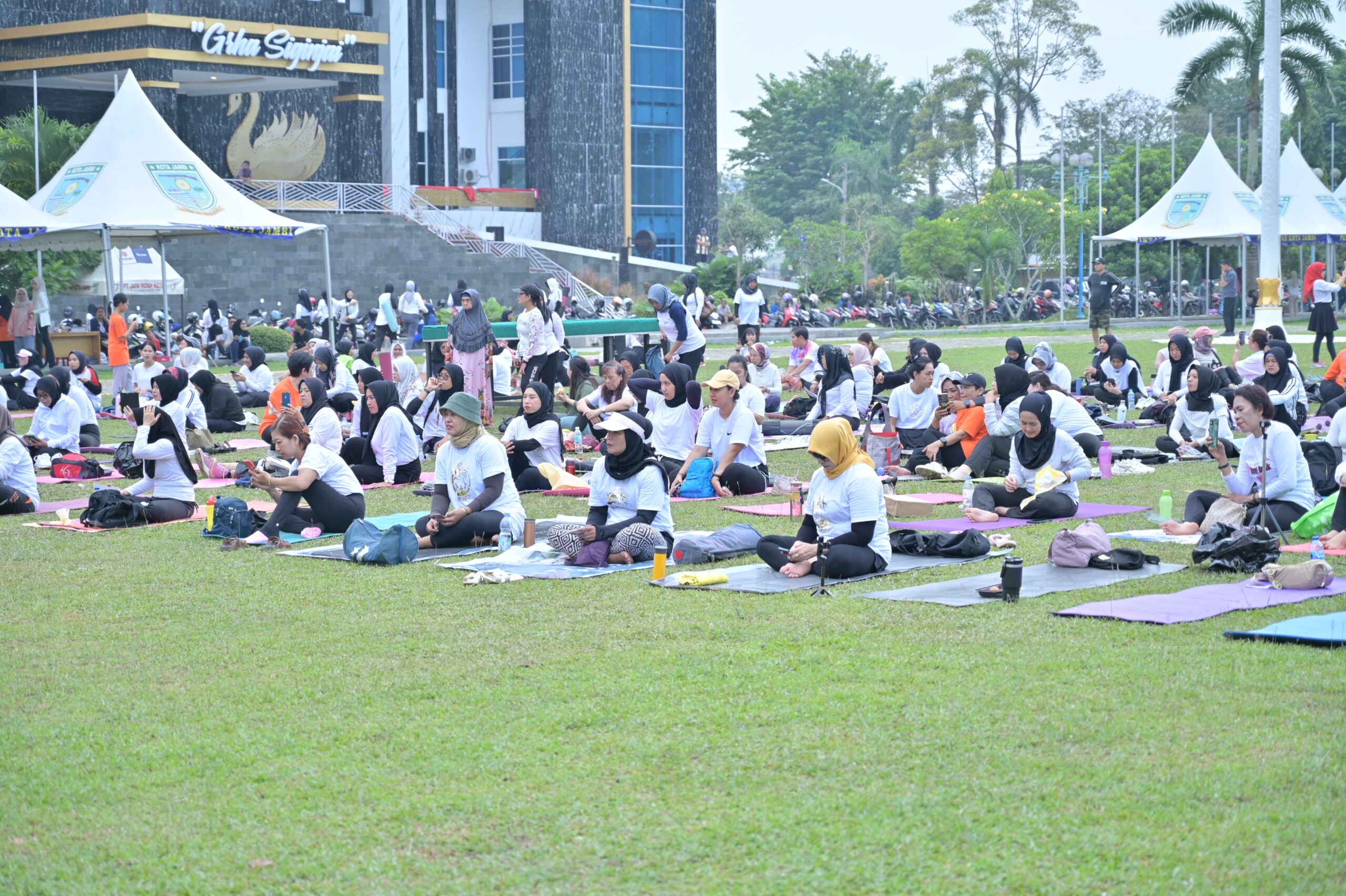 Acara yang berlangsung meriah ini merupakan bagian dari upaya Pemkot Jambi dalam mendorong gaya hidup sehat dan kebahagiaan masyarakat melalui aktivitas olahraga, khususnya Yoga. Wali Kota Jambi, Dr. dr. H. Maulana, M.K.M., bersama istri yang juga Ketua TP PKK Kota Jambi, Dr. dr. Hj. Nadiyah Maulana, Sp.OG, turut hadir langsung dan mengikuti rangkaian kegiatan.