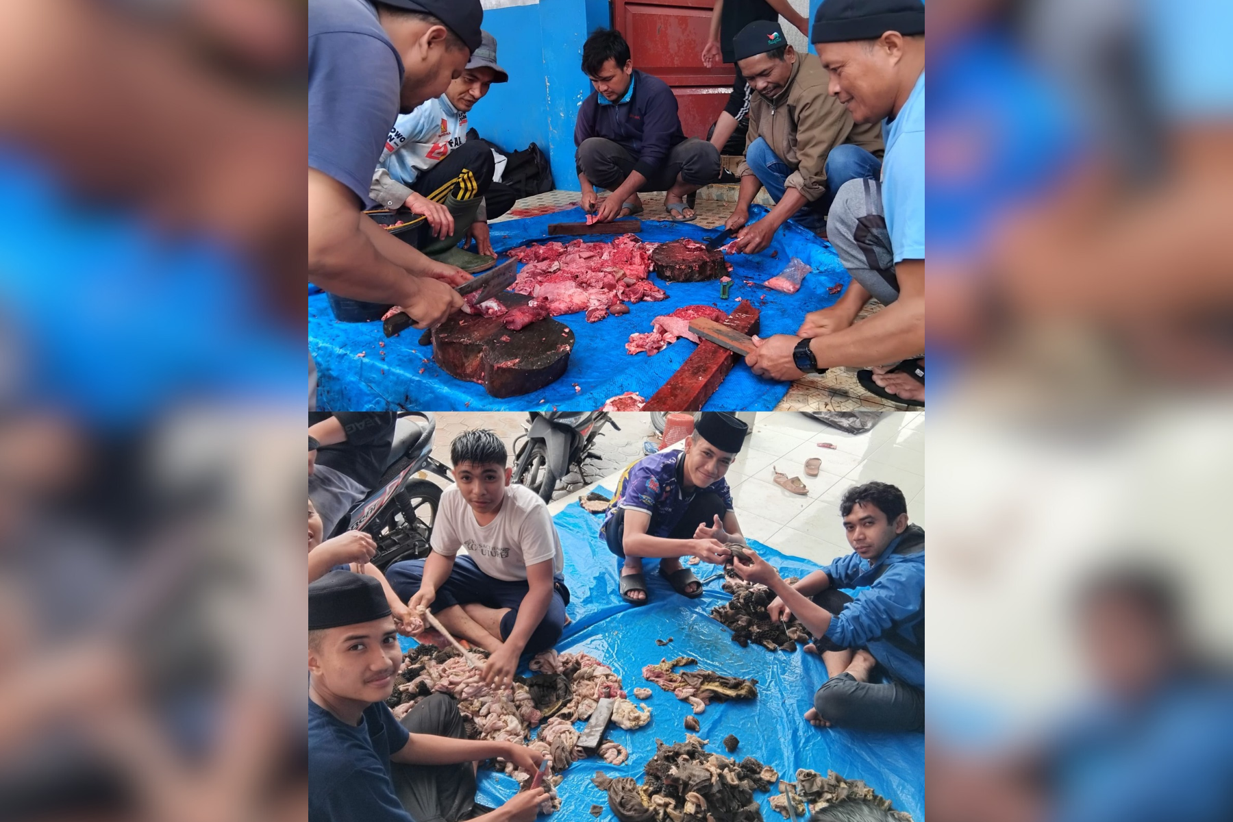 Para santri terlihat antusias mengikuti seluruh rangkaian kegiatan. Mereka bahkan diberi kesempatan untuk terlibat langsung, seperti membantu membersihkan jeroan hewan kurban. Meskipun cuaca sempat tidak bersahabat akibat hujan disertai angin kencang, proses pemotongan tetap berjalan lancar dengan berpindah ke teras sekolah sebagai langkah antisipatif.